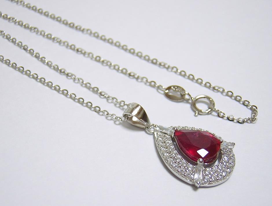 天然ルビーとキュービックジルコニアを使用したペンダントネックレスです。