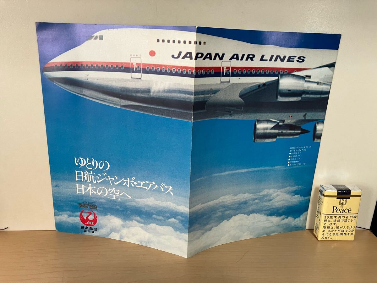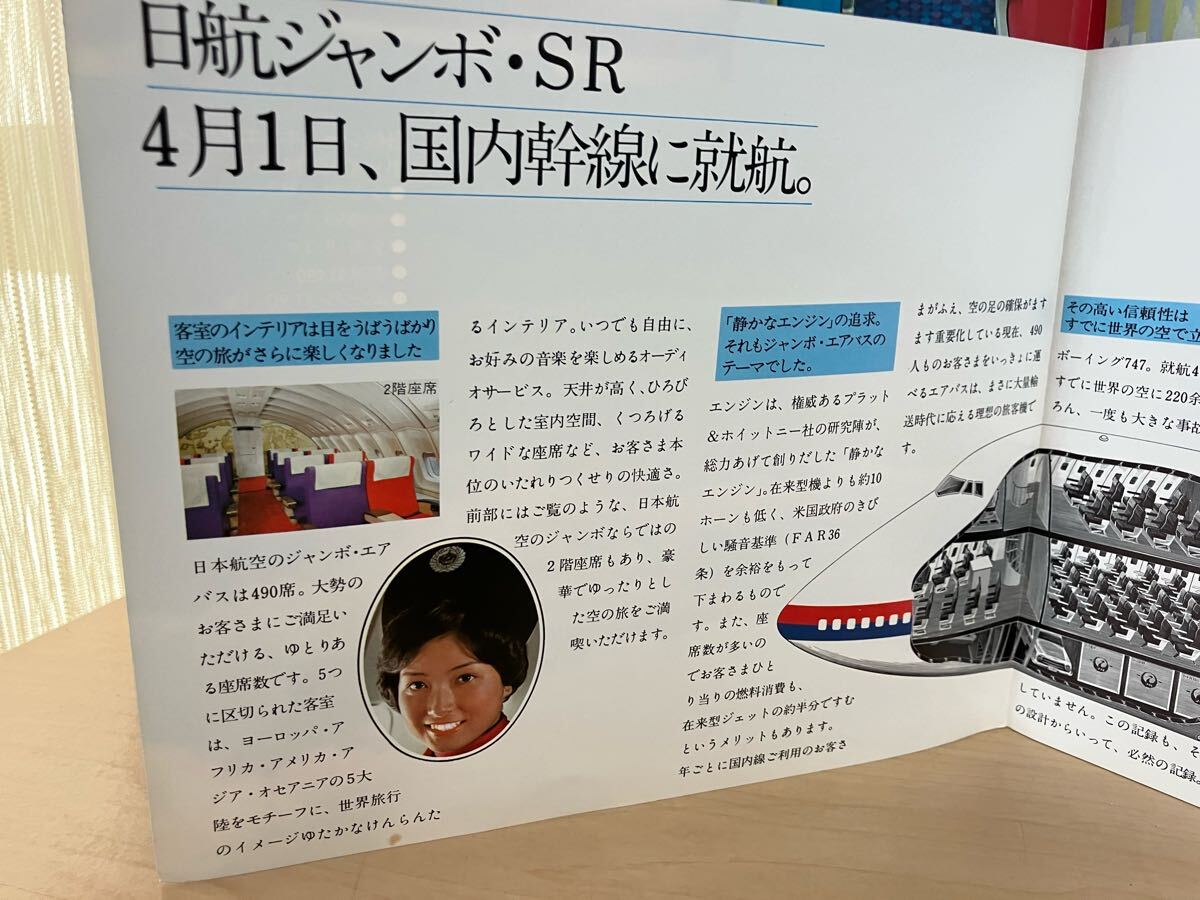 日本航空・JAL ジャンボ・エアバス 747SR パンフレット 1枚物/二つ折り ヤケ/シミ/汚れ/擦れ/他難あり