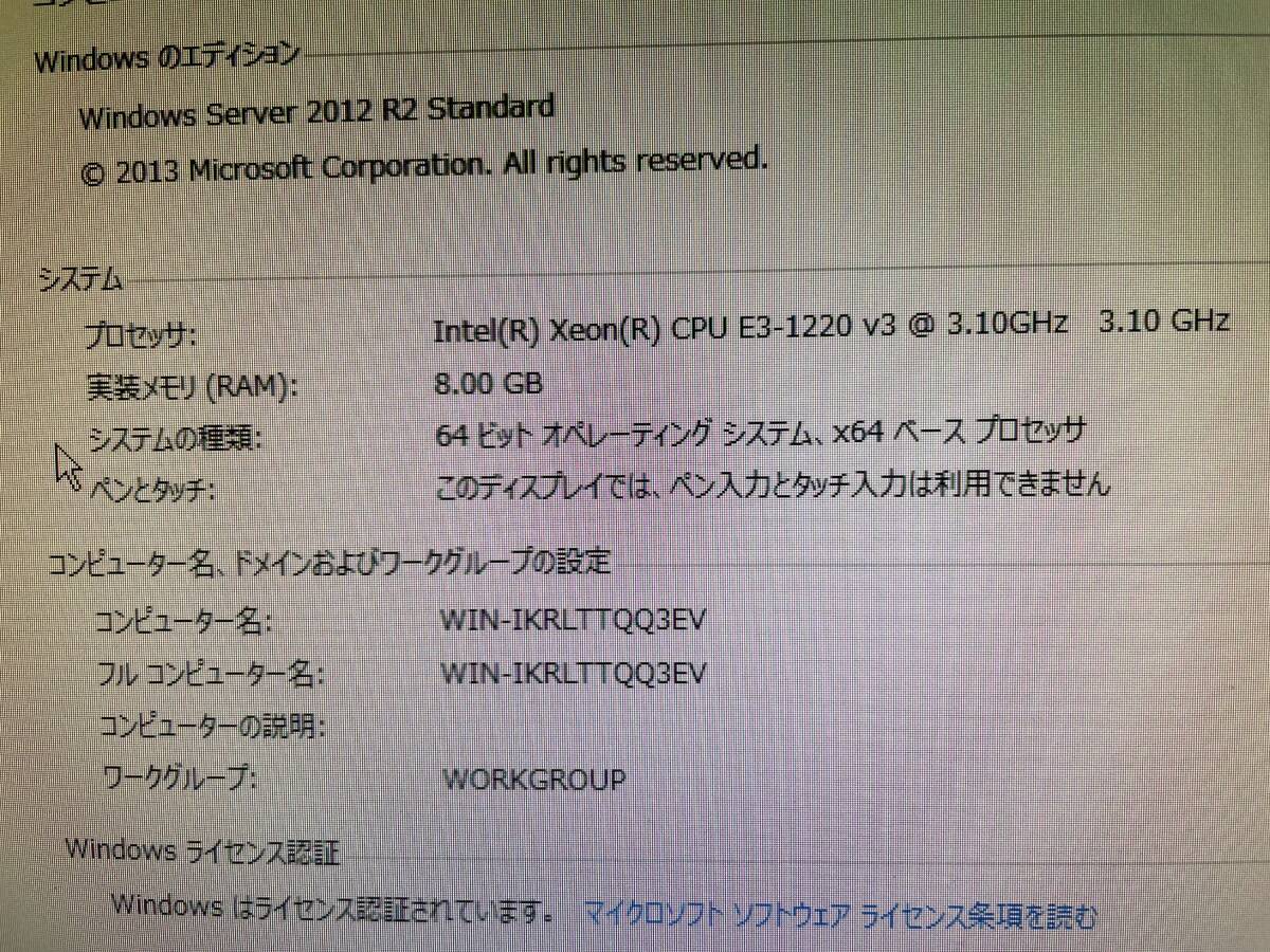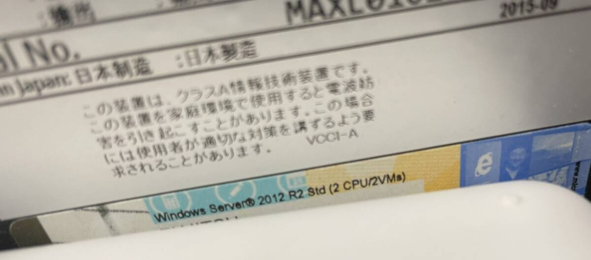 windows server 2012 R2のプロダクトキーが貼られています。
