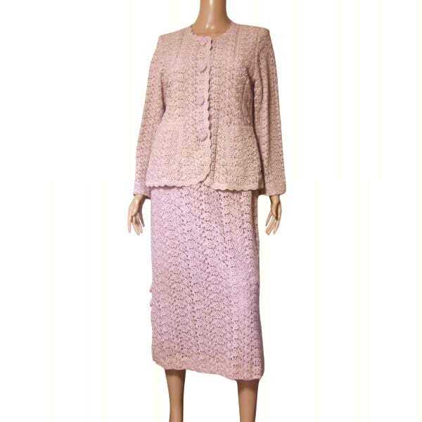 Product name: 美品/バラ色の暮し スカートスーツ レース 大きいサイズ 13号 LL 相当 古着 ピンク レディース 春 秋 綿100 コットン セットアップ 透け感