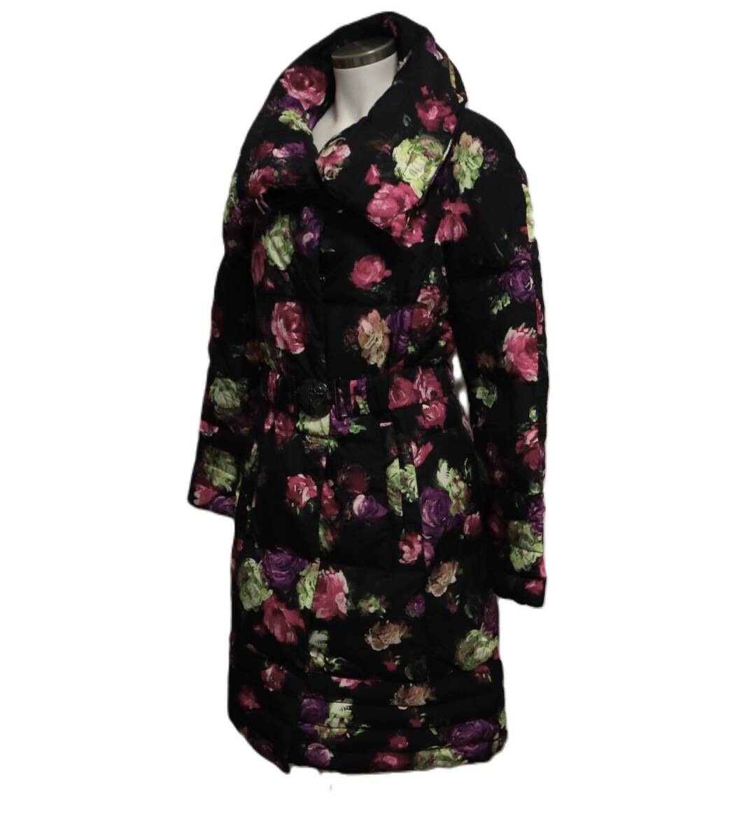 【即決】美品 Blumarine ブルマリン◆フラワー ダウン ロング コート ベルト付 地色ブラック 40  o