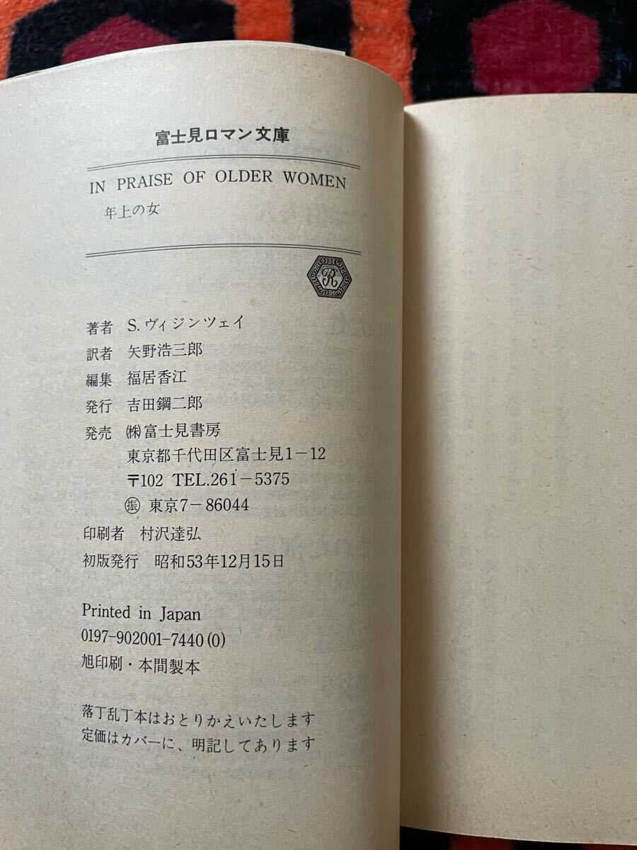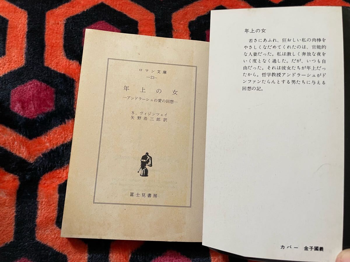 Product name: 富士見ロマン文庫23 S.ヴィジンツェイ「年上の女-アンドラーシュの愛の回想-」矢野浩三郎訳 初版 装幀:金子國義 富士見書房