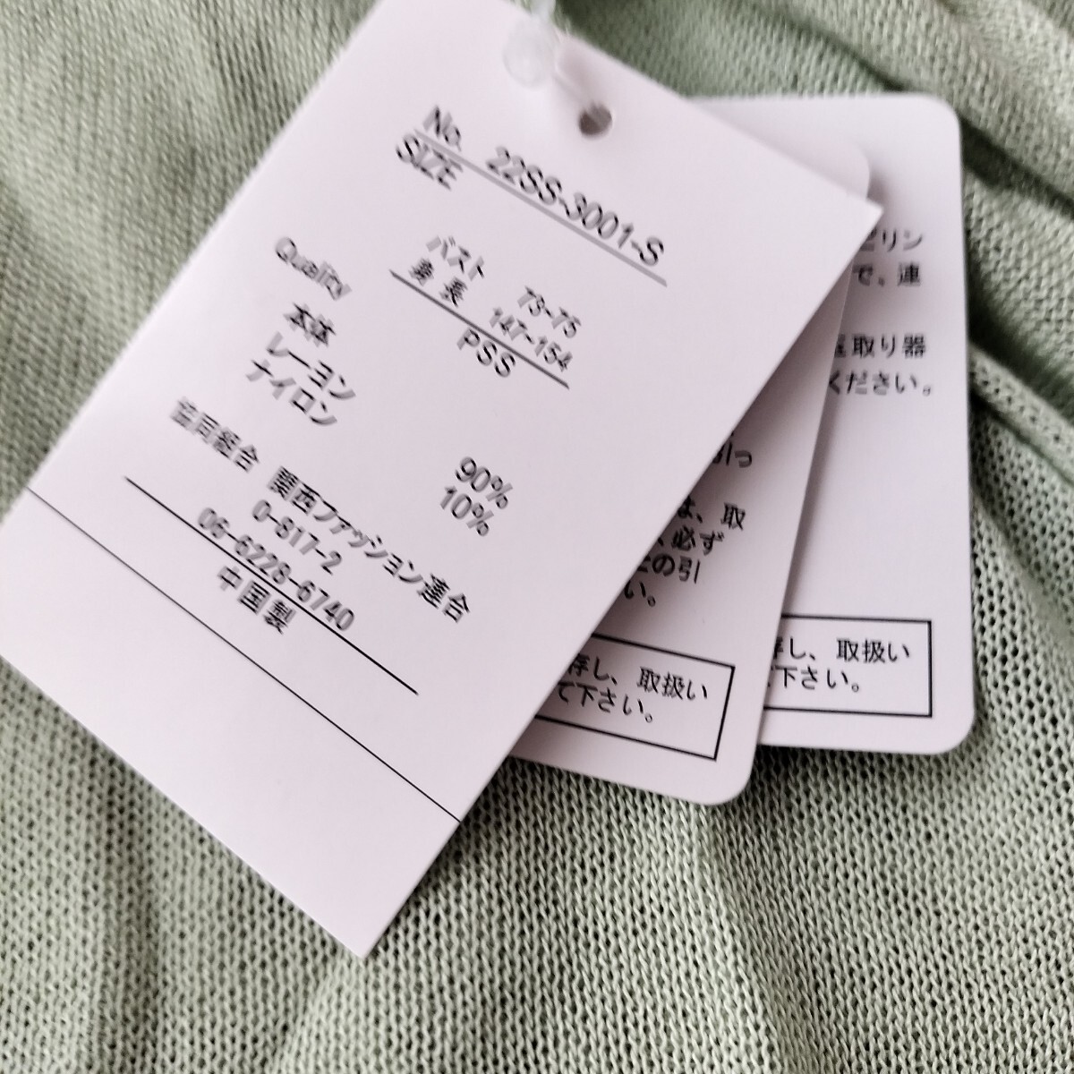 新品タグ付き【PSSサイズ】小さいサイズ Vネック シアーニット チュニック サイドスリット レディース 五分袖 グリーン系 送料無料