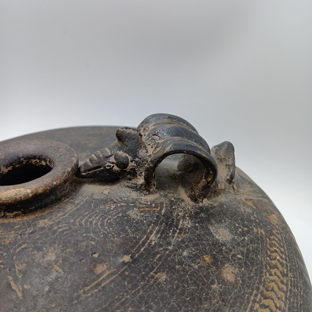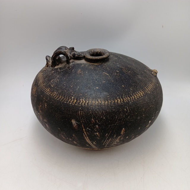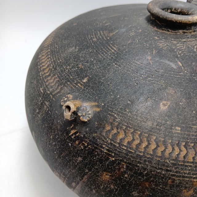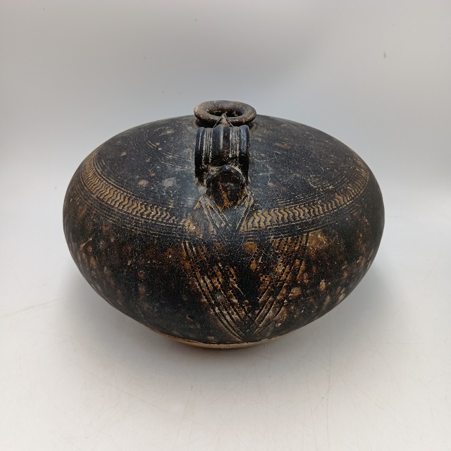 Product name: 〓79)クメール褐釉刻線文壺 アンティーク アンコールワットデザイン 酒瓶 花瓶 フラワーベース 花器 12~13世紀頃 コレクションξ