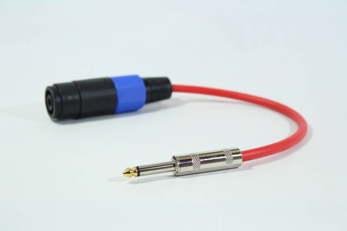 スピコン端子を接続することで簡単にTSフォン端子に変換が可能です。急遽フォン端子が必要になった場合などにケーブルを変えることなく対応することができます。2本用意すれば簡易的にスピコンースピコンをTSフォンーTSフォンのスピーカーケーブルとして使用することも可能です。