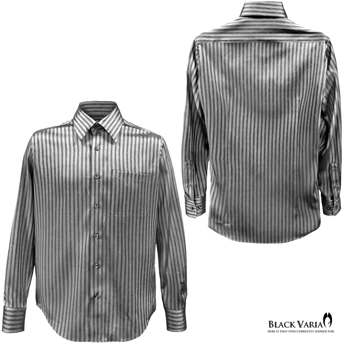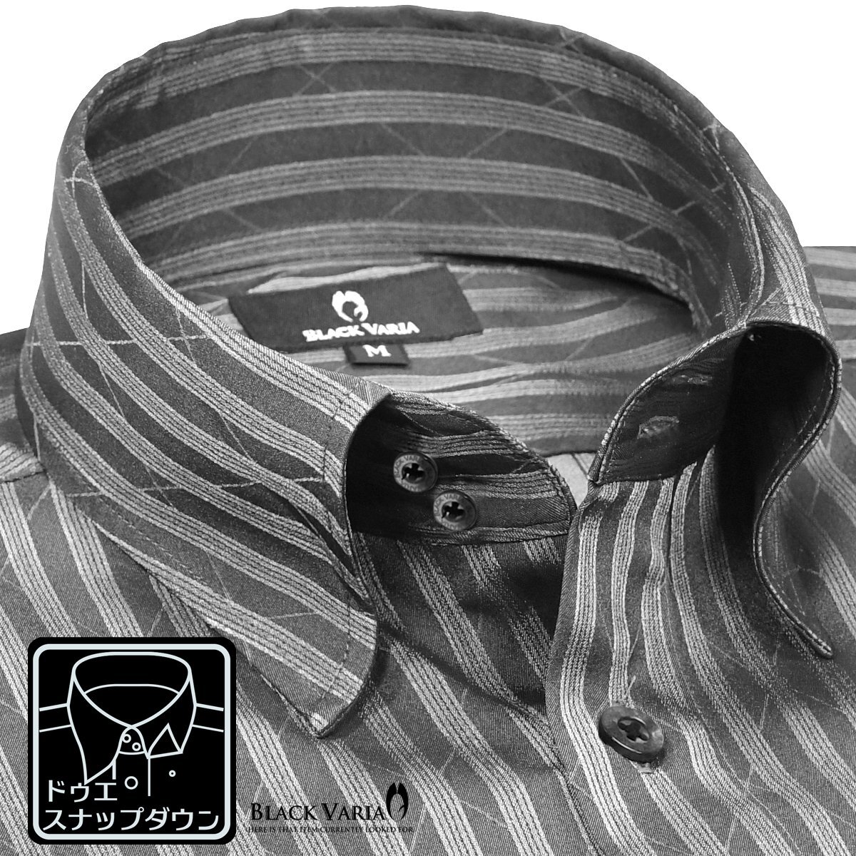 191850-gy ブラックバリア ドゥエボットーニ ストライプ柄 ジャガード スナップダウン 長袖ドレスシャツ メンズ(グレー灰シルバー銀) 3L
