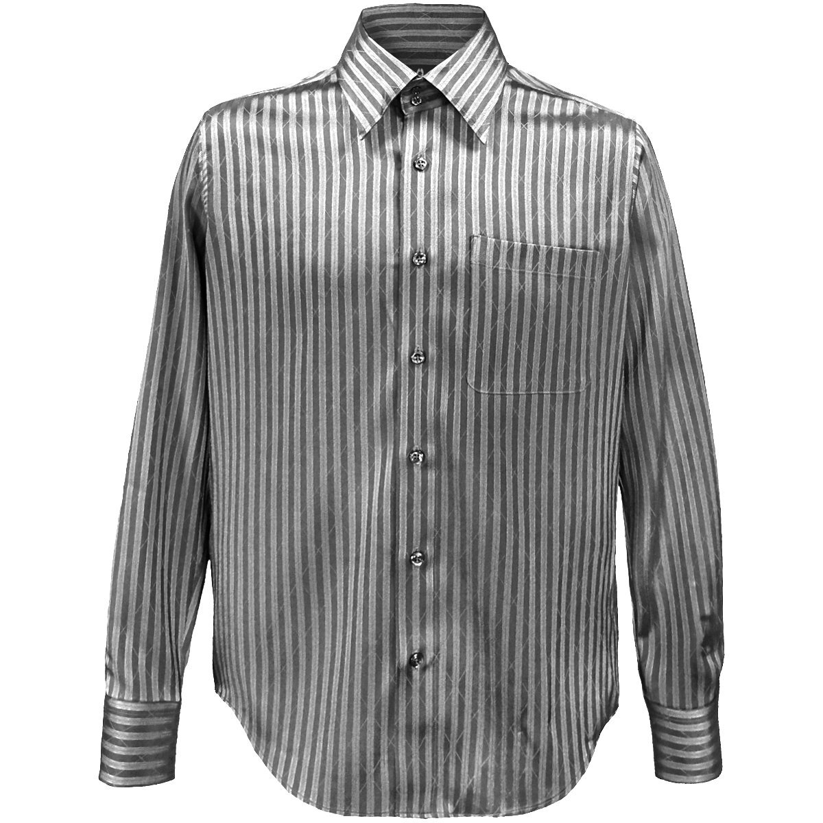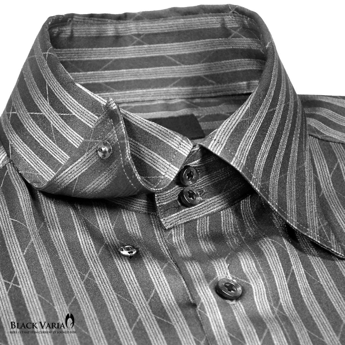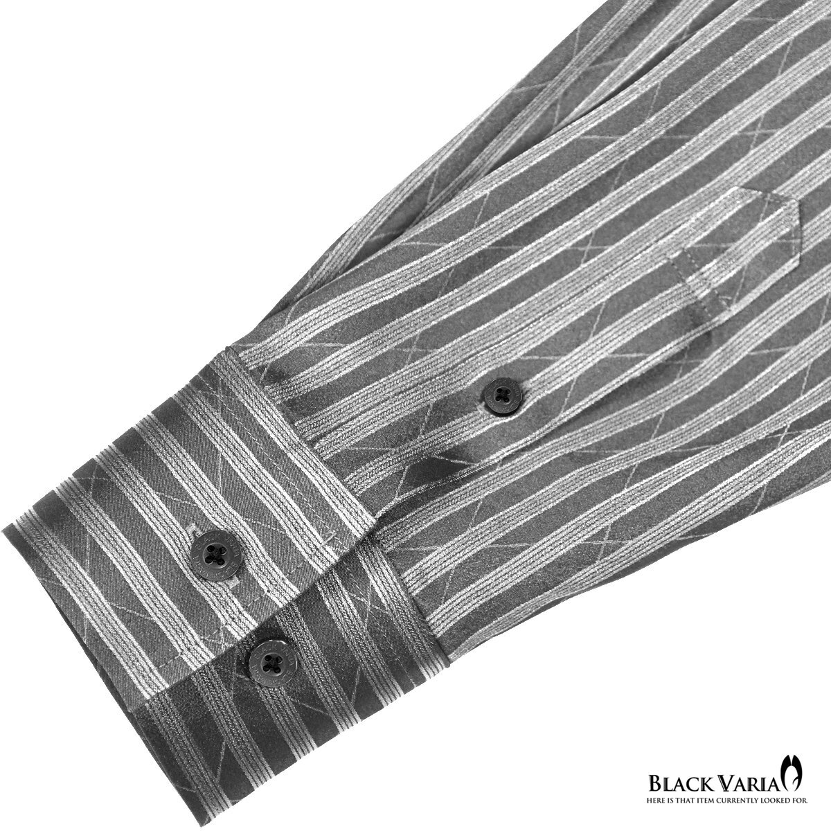 Product name: 191850-gy ブラックバリア ドゥエボットーニ ストライプ柄 ジャガード スナップダウン 長袖ドレスシャツ メンズ(グレー灰シルバー銀) 3L