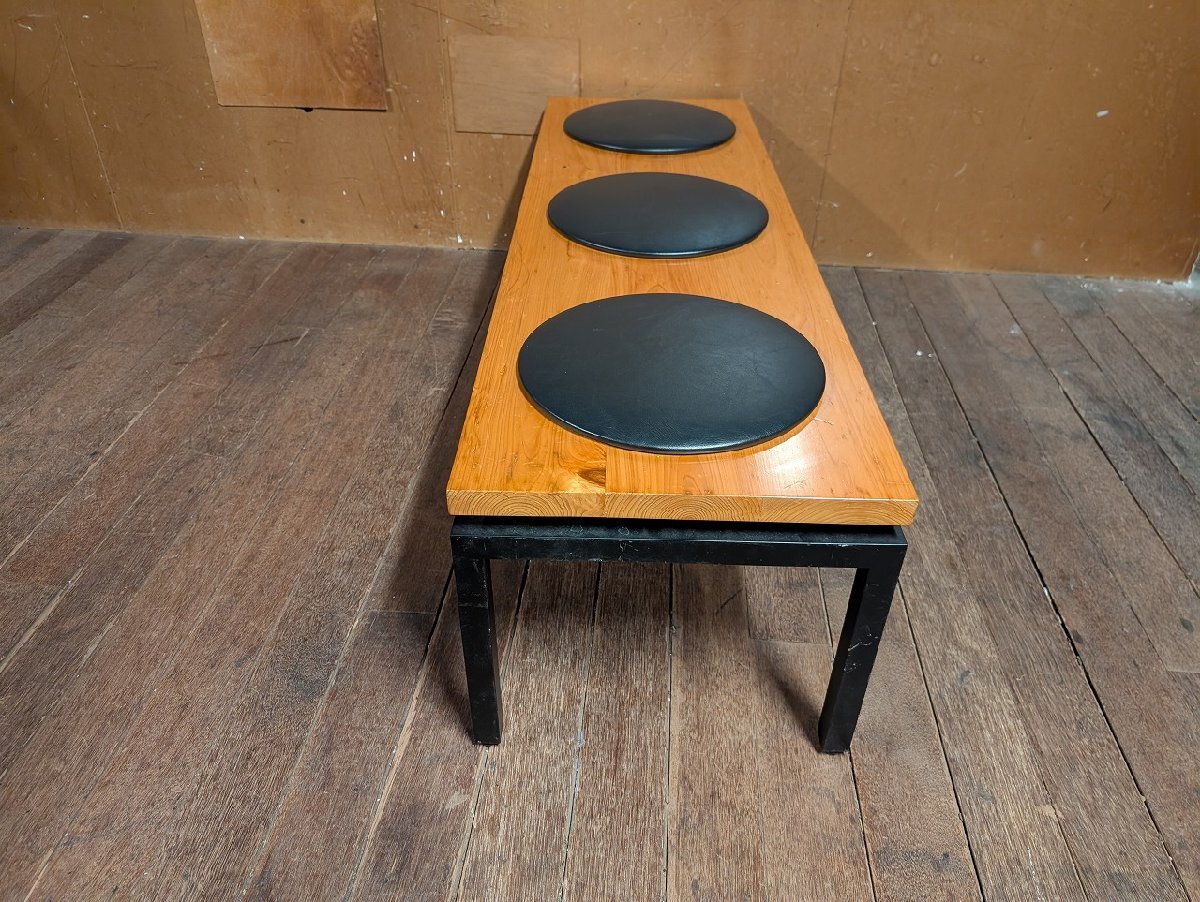 Product name: デザイナーズ ウッド 丸椅子 ベンチ ソファ コの字型 チェア 木製 3P/アイアン テーブル レトロ スツール ロビーC