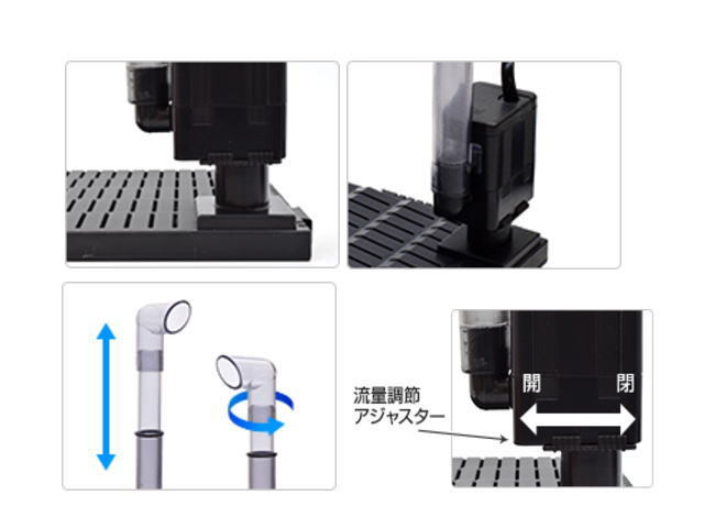 また、ポンプの流量も調整でき、強い水流を嫌う生体の飼育にも対応出来ます。