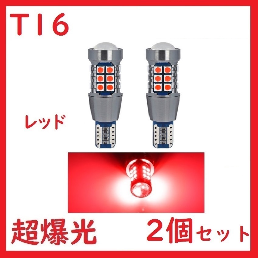 T16 LED ウェッジ バルブ レッド  T16 T15 W16W LEDバックランプ 後退灯 バックライト 12V 車用 LEDバルブ LEDライト 電球 高輝度 3030SMD 27連 拡散レンズ付き