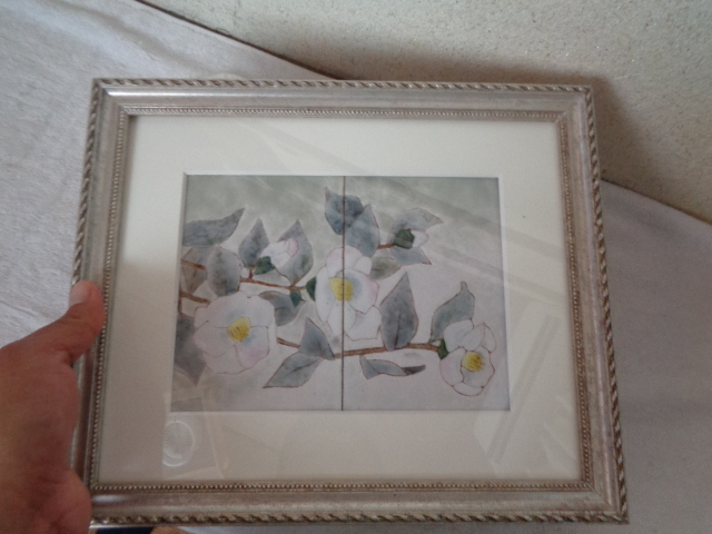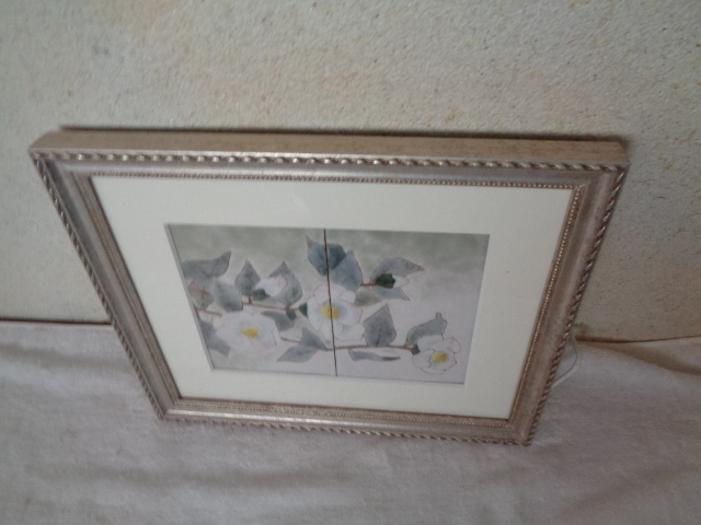 Product name: 額入り 陶板画/花の絵/椿?/アートタイル/作者等不詳/