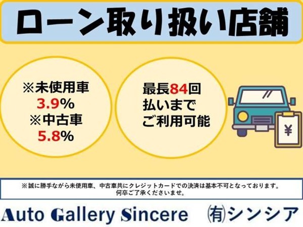 「親切」「丁寧」をモットーに「顧客満足度100%」を目指しています!社名であるシンシアとは「誠実」を意味しています!この社名通り地元密着で品質には自信があり、設立以来10年の経験と実績で、あなたの快適なカーライフをご提供致します。登録(届出)済未使用車は、すべてメーカー保証を継承致します!新車(中古車除く)をお得に乗る事ができるニューバックアップローンもご用意してます!