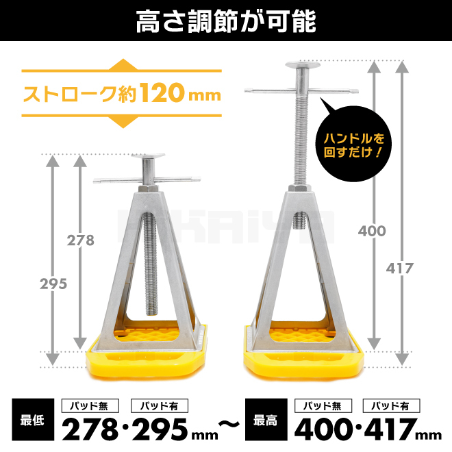 ●アルミジャッキスタンドと沈み込み防止パッドの4台セット