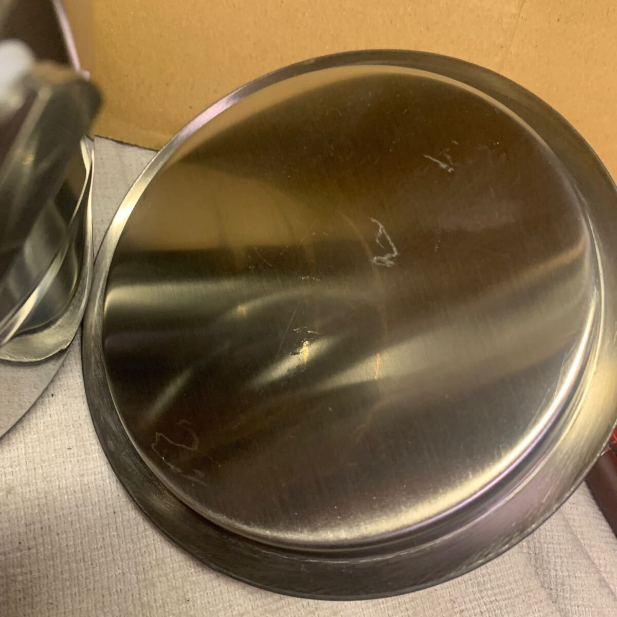 長期保存品のため外箱に汚れがあります。アイスペール本体直径約12センチ高さ12.5センチ蓋とトングがついています。ノークレームノーリターンでお願いします。運賃を60センチに収めるため、外箱に直接テープを貼っての発送となります。