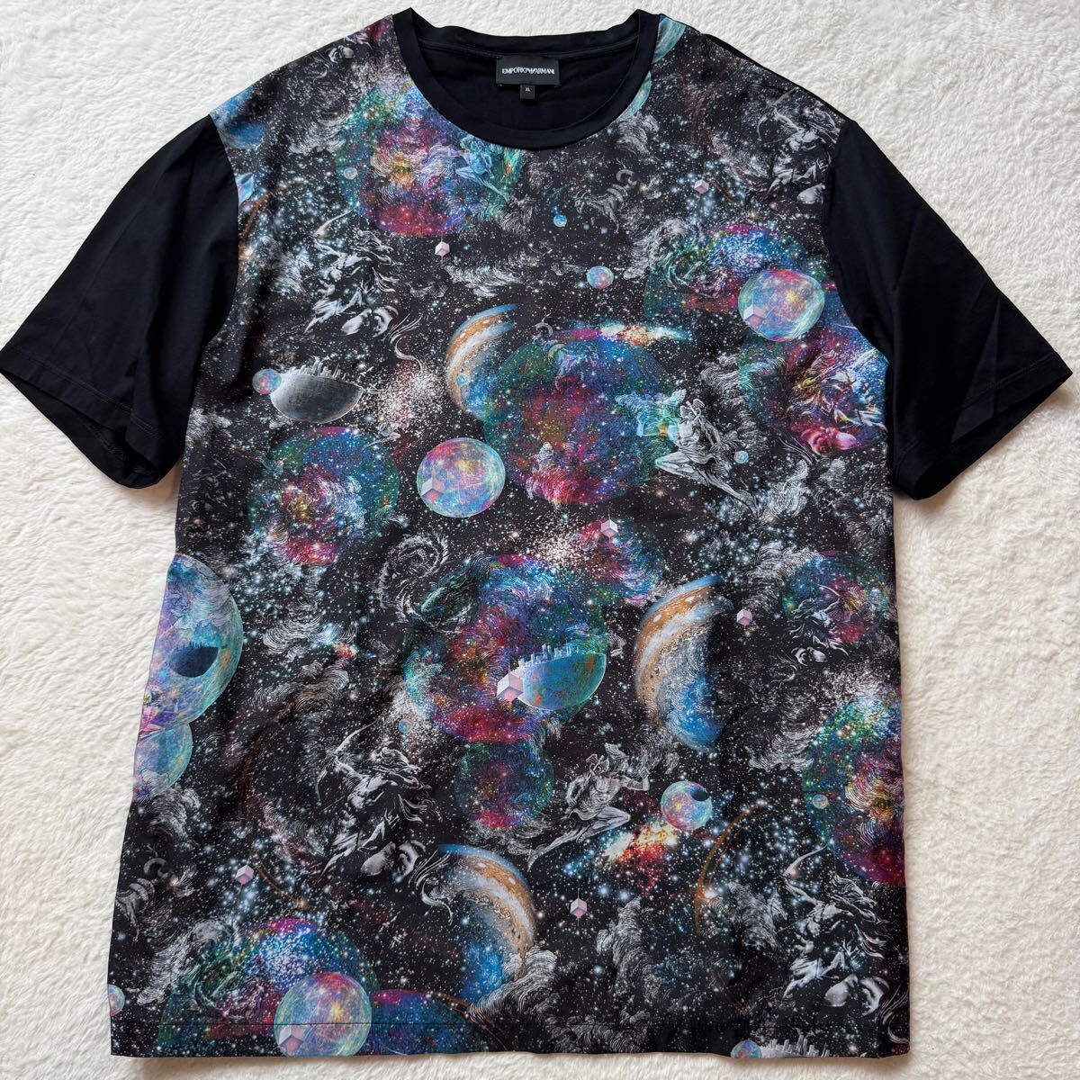 未使用級 メンズXL/■EMPORIO ARMANI Tシャツ カットソー 半袖 宇宙 Surreal schwarz 総柄 エンポリオ アルマーニ ブラック