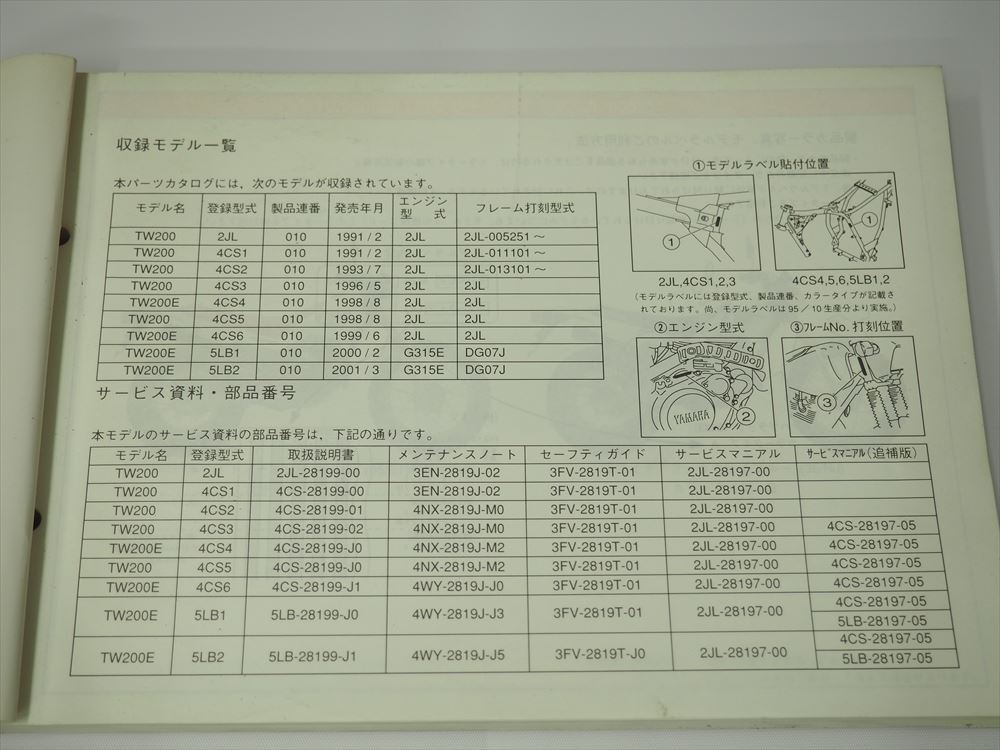 TW200 TW200E 2JL 4CS1 4CS2 4CS3 4CS4 4CS5 4CS6 5LB1 5LB2 2001年4月発行 パーツリスト DG07J