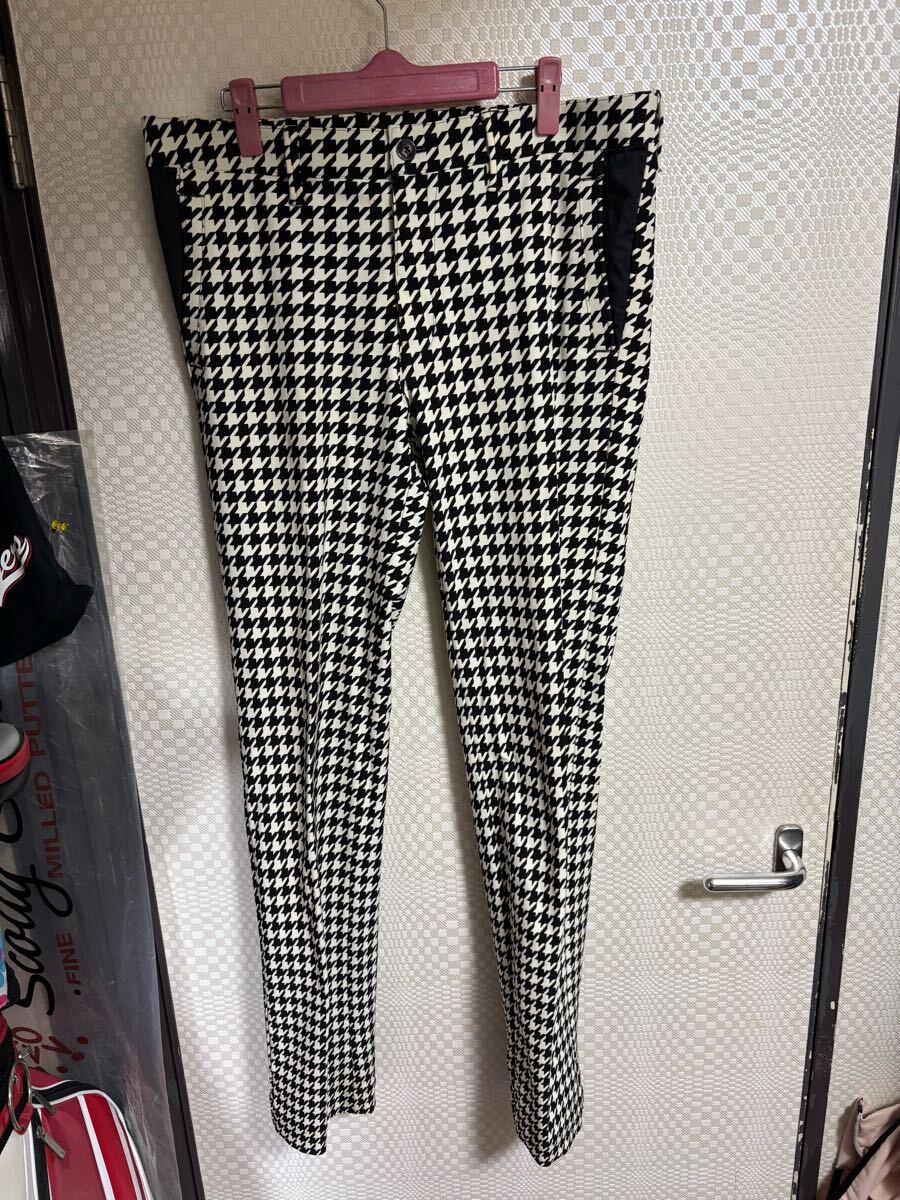 23区ゴルフのストレッチが効いた千鳥格子柄パンツです。サイズ平置きウエスト46股下84裾幅19全長109センチ位です。きれいな状態ですよ。