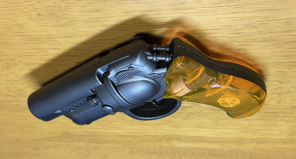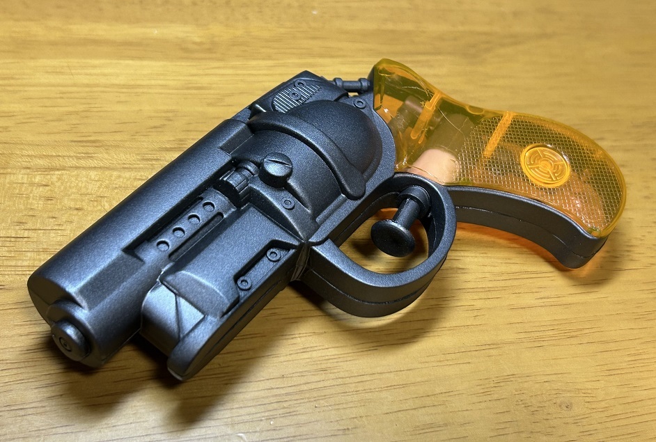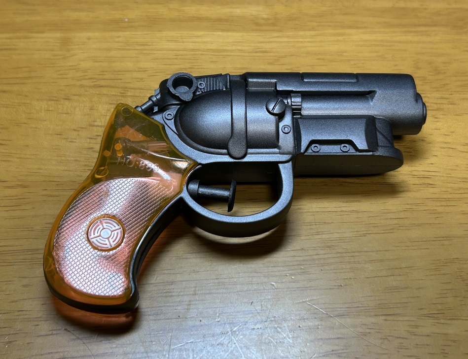 プロップのクリアオレンジのグリップの感じを出しました。水鉄砲としての機構はそのまま残してあるので、水を発射する
