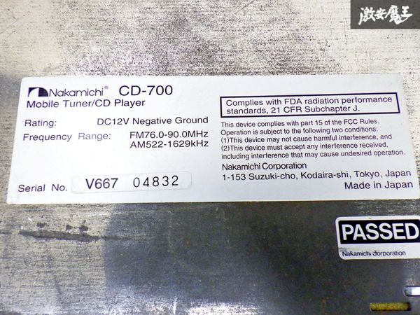 Product name: 【希少品!】Nakamichi ナカミチ CD-700 カーオーディオ 高級CDプレイヤー 即納 棚26A