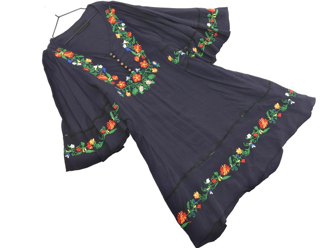 Product name: JEANASIS ジーナシス 刺繍 チュニック ワンピース sizeF/濃紺 ■◆ ☆ fgb1 レディース