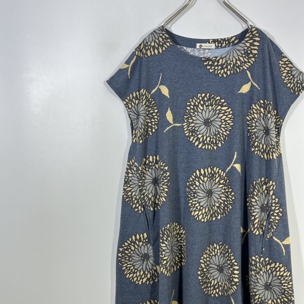 BARNDOOR バーンドア ワンピース 長袖 ひざ丈 ゆったり ポケット Mサイズ グレーブルー 花柄 レディース ベーシックカジュアルスタイル