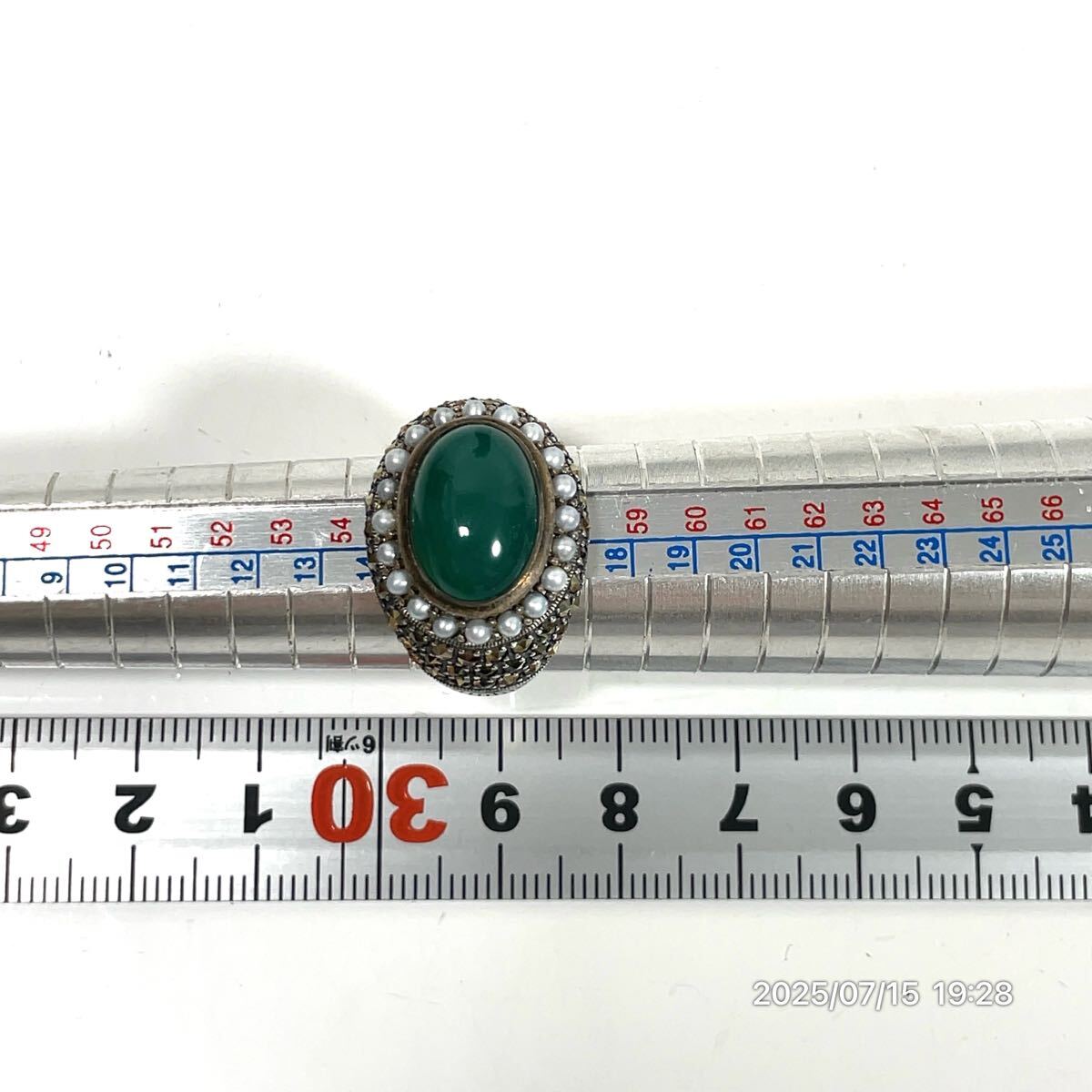 Product name: SILVER925 SV925 碌山 ロクザン オーバル調 グリーンアゲート 色石 シードパール リング 指輪 アクセサリー 装飾品 ファッション 小物