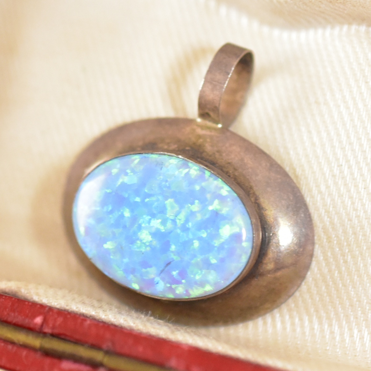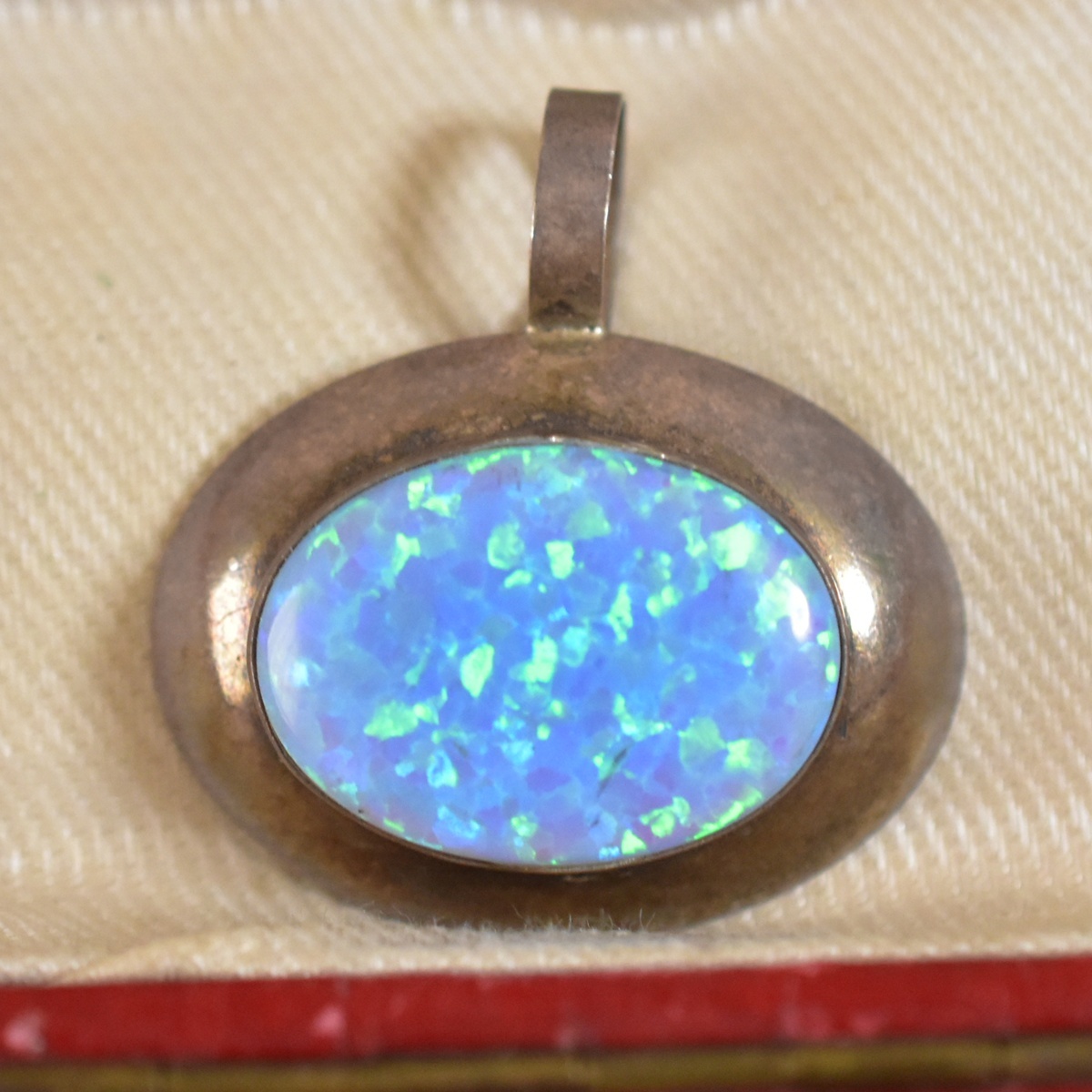 20世紀初頭ごろに作られた模造オパールのペンダントトップです。