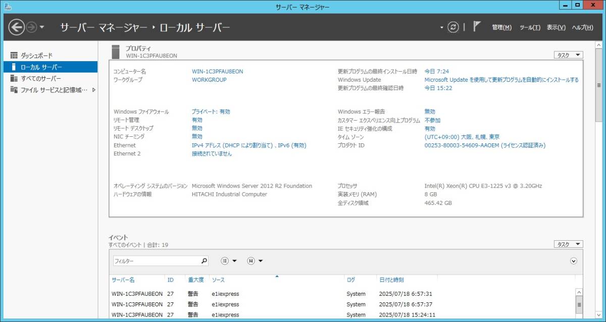 Windows Server 2012 R2 Foundation をインストールして、ドライバを当ててから、一通りWindowsUpdateも適用してあります。
