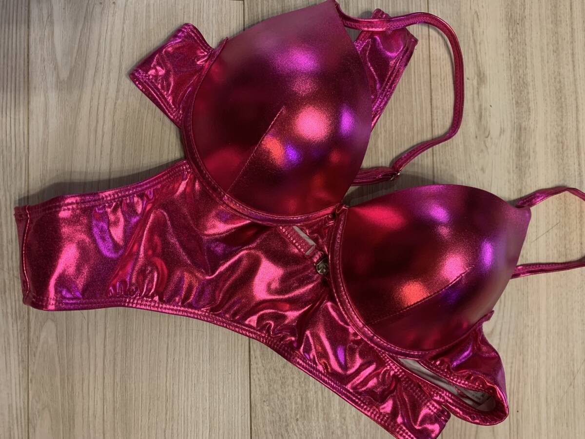 新品 ワイヤー ビキニ 水着 メタリック ラズベリー系 / D75くらい