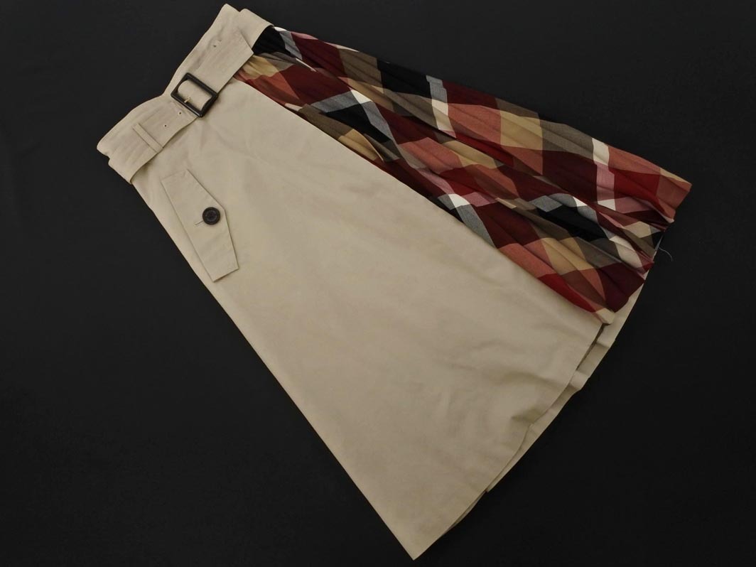 Product name: ブルーレーベル クレストブリッジ サイドプリーツ 切替 ロング スカート size34/ベージュx赤 ■◇◎ ☆ fgc5 レディース