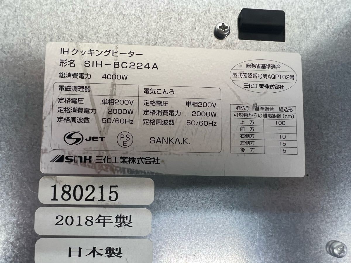 Product name: SNK 三化工業 IHクッキングヒーター IH×RHコンビ SIH-BC224A ビルトイン 2口 上面操作タイプ 200V 幅44.5cm②