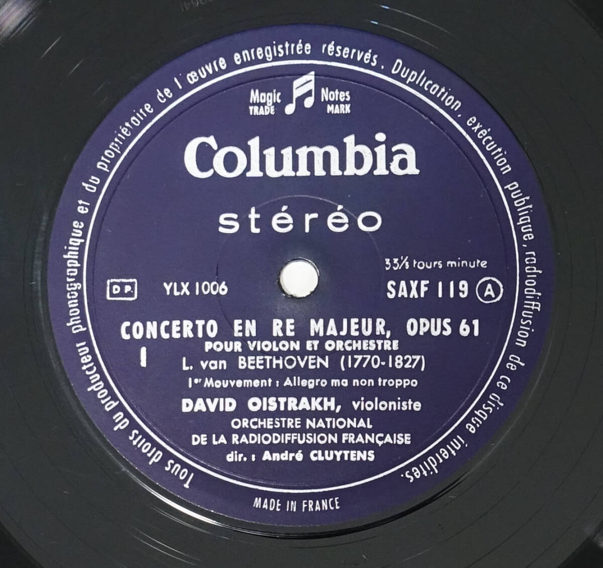 仏Columbia SAXF 119 ベートーヴェン: ヴァイオリン協奏曲 オイストラッフ