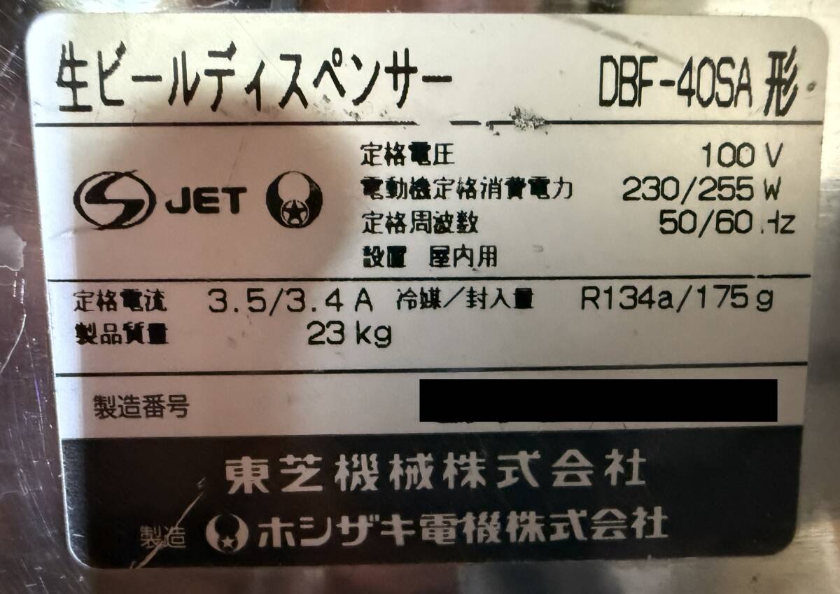ホシザキ 電気式 生ビールサーバー DBF-40SAの出品になります。