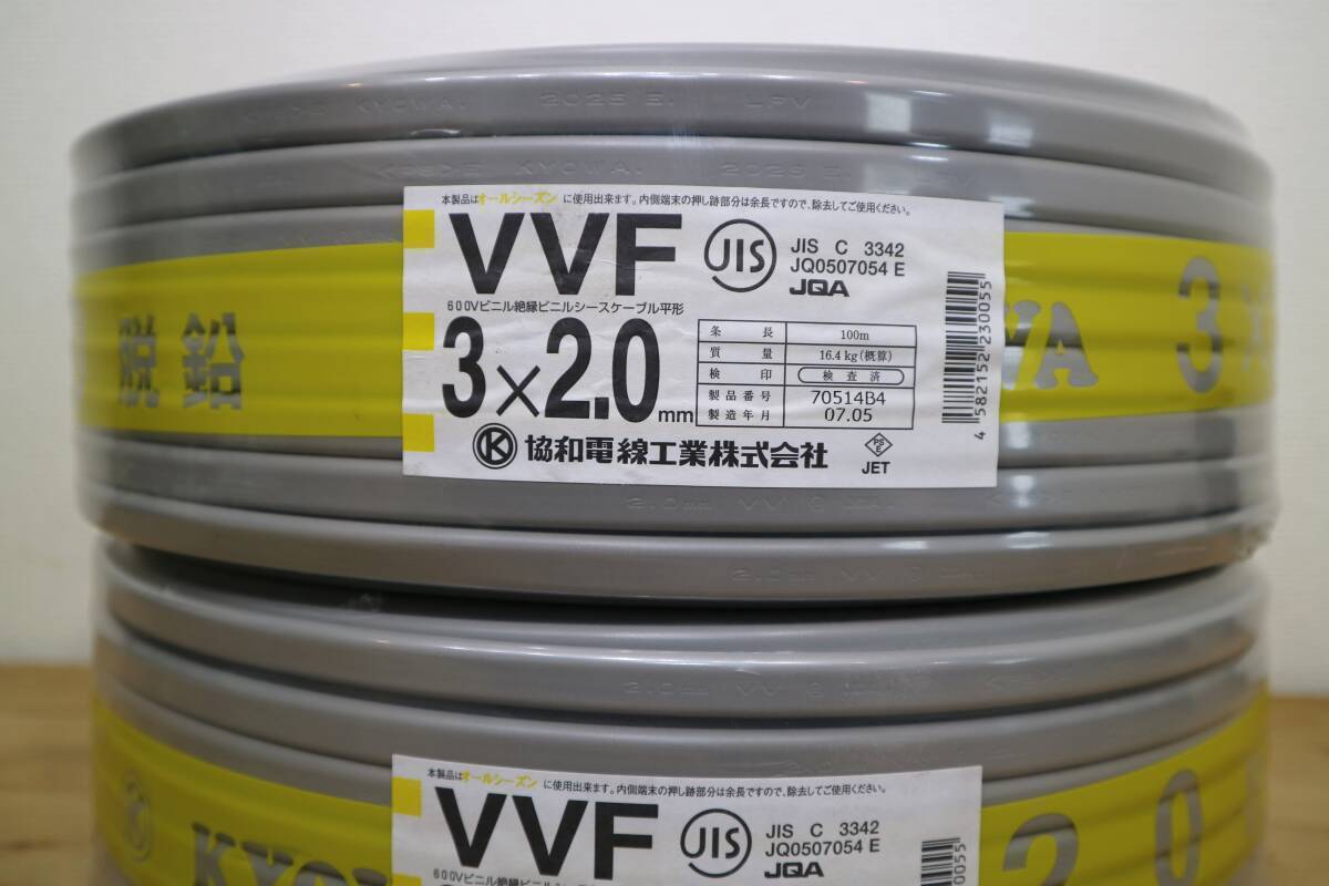 2本まとめて 新品 未使用 協和電線工業㈱ 【 VVF3x2.0mm 】 100m巻
