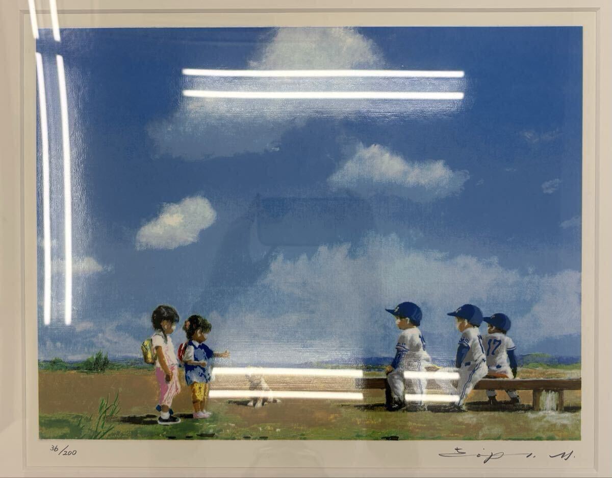 Product name: 1000円〜 真作 櫻井幸雄 出番のないベンチ 『待ての指令』 額縁付 シルクスクリーン 直筆サイン ナンバー入 絵画 インテリア 風景画