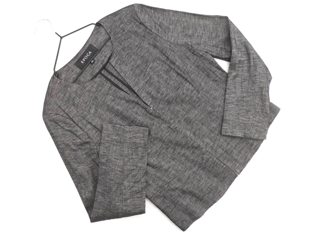 Product name: EPOCA エポカ リネン混 ノーカラー ジャケット size40/チャコール ■◇ ☆ fgc8 レディース