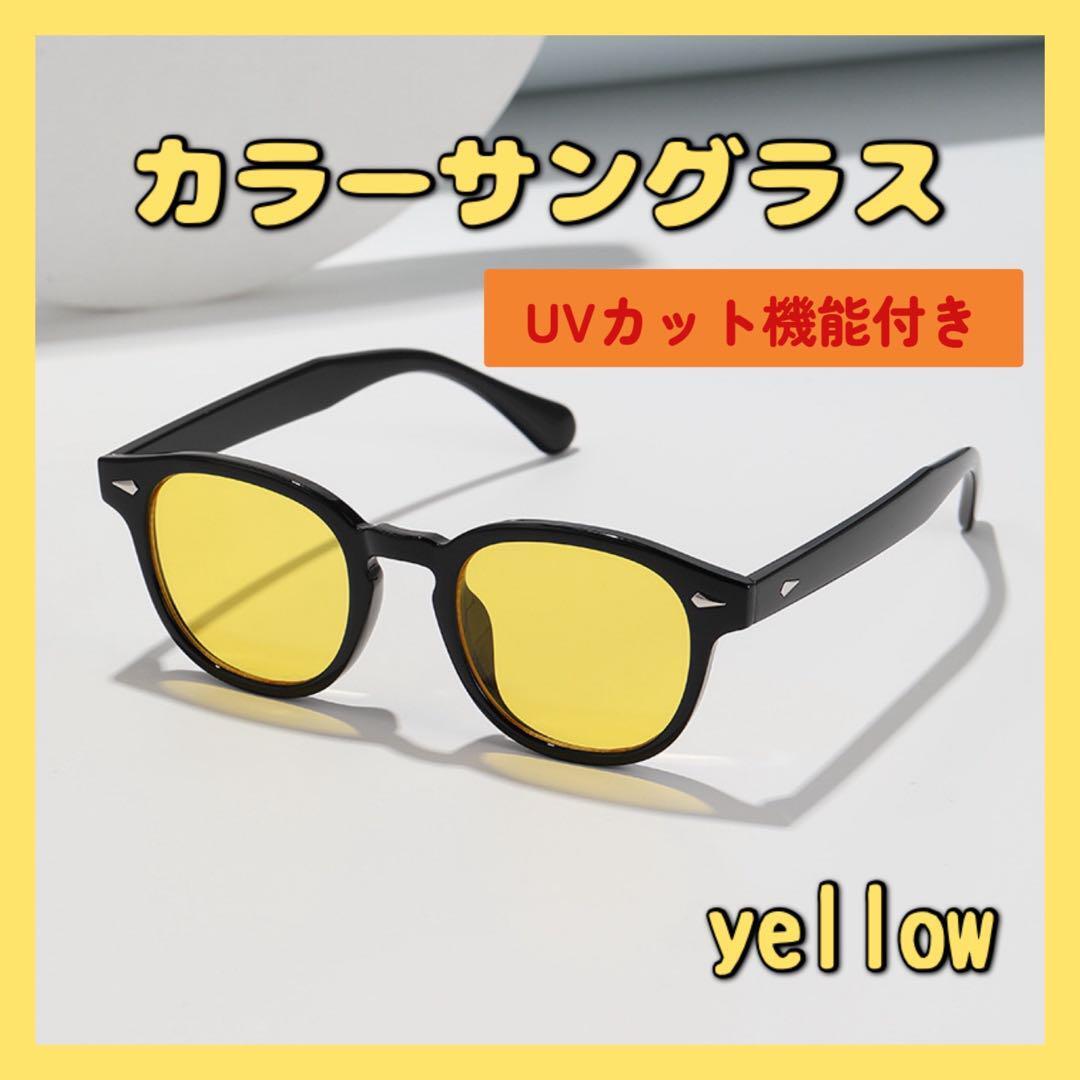 カラーサングラス イエロー サングラス UVカット 400 黄色 おしゃれ 黒縁