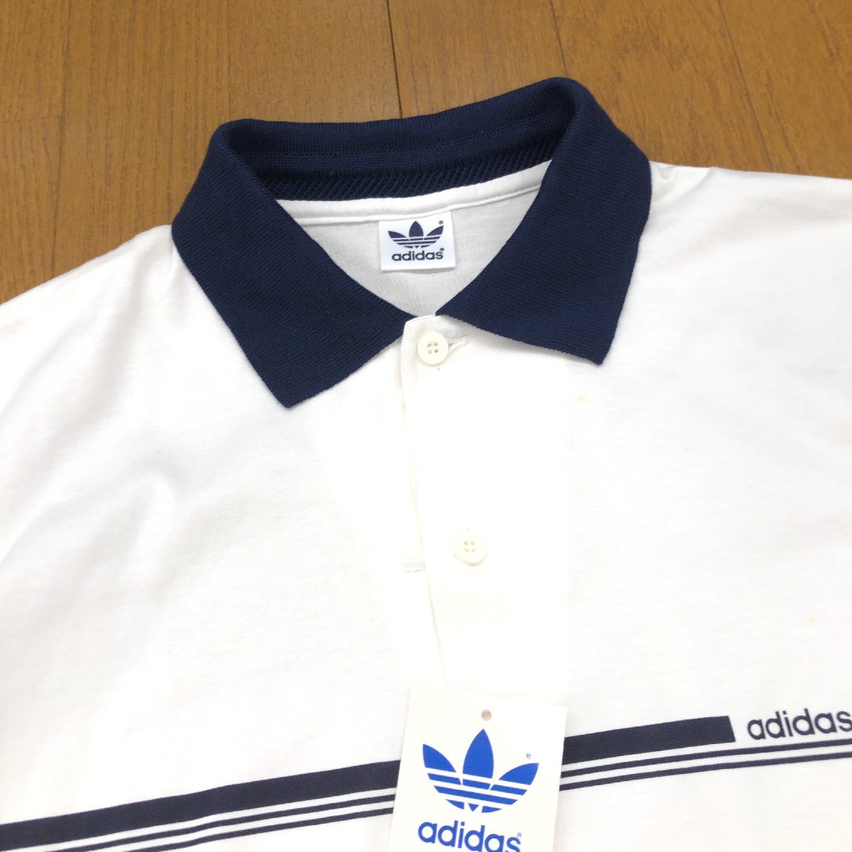 デッドストック 80's adidas アディダス デサント製 ロゴプリント ポロシャツ L 白 半袖 ヴィンテージ 古着 新品 未使用 VINTAGE archive