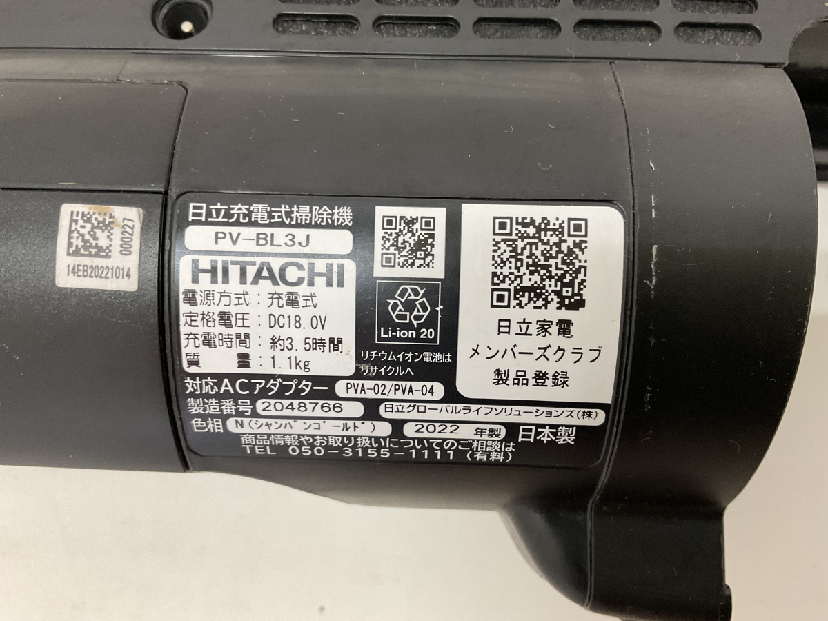 【B123】中古品 HITACHI PV-BL3J 動作確認・簡易清掃済み 2022年製 コードレスクリーナー 日立