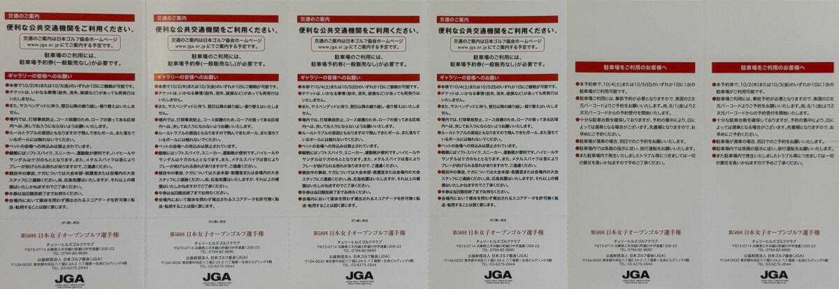 日本女子オープンゴルフ選手権 観戦券 駐車場予約券 10/2~5