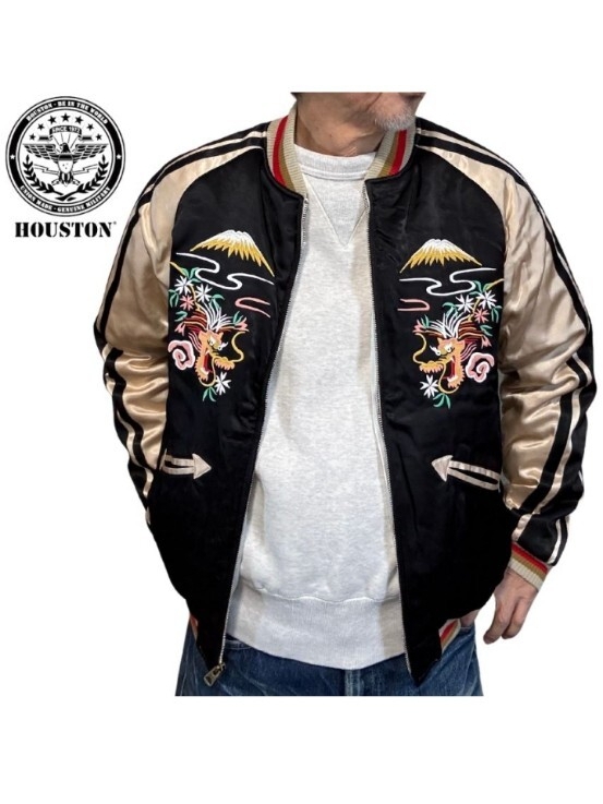 Houston ヒューストン スカジャン Mサイズ ブラック ゴールド★レーヨンスーベニアジャケット★虎 鷹 龍 刺繍 富士山 定価22800円