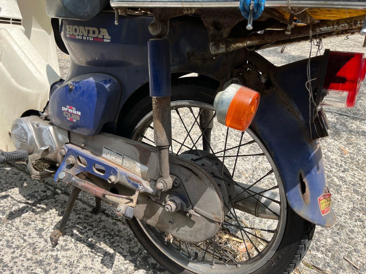 走行7万キロでエンジンは掛かって取り敢えず走れますが、新聞屋さんが使ってたそうでリアフェンダーが腐り落ちてます