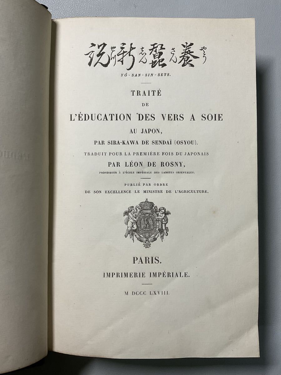 戦前紡織業関係者旧藏②「養蠶新説/ Trait de l'education des vers 」1冊揃 上垣守国 1868年フランス語訳 稀少本 日本の養蚕 唐本和本