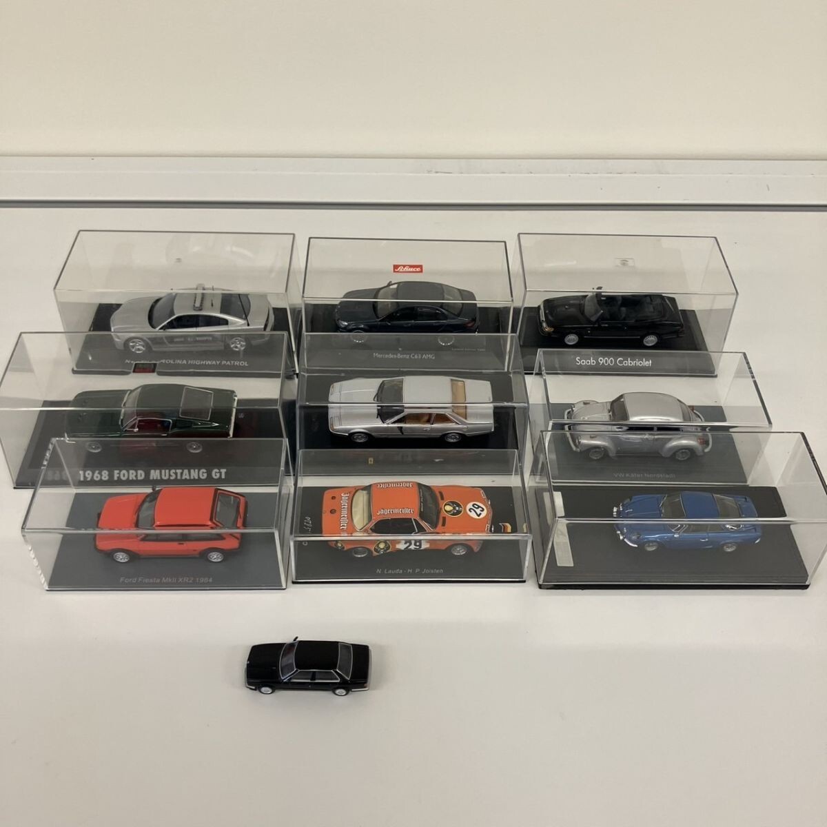 J031-CH21-178 まとめ売り ミニカー アクリルディスプレイ MKII XR2 1984 Benz C63 AMG MUSTANG GT Saab900 他 10点 HA