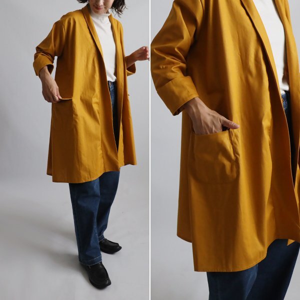 Product name: 1000円からスタート ギマ擬麻コットン ローブ襟 ロング カーディガン 羽織り 春スプリング コートゆったりマスタードB50C