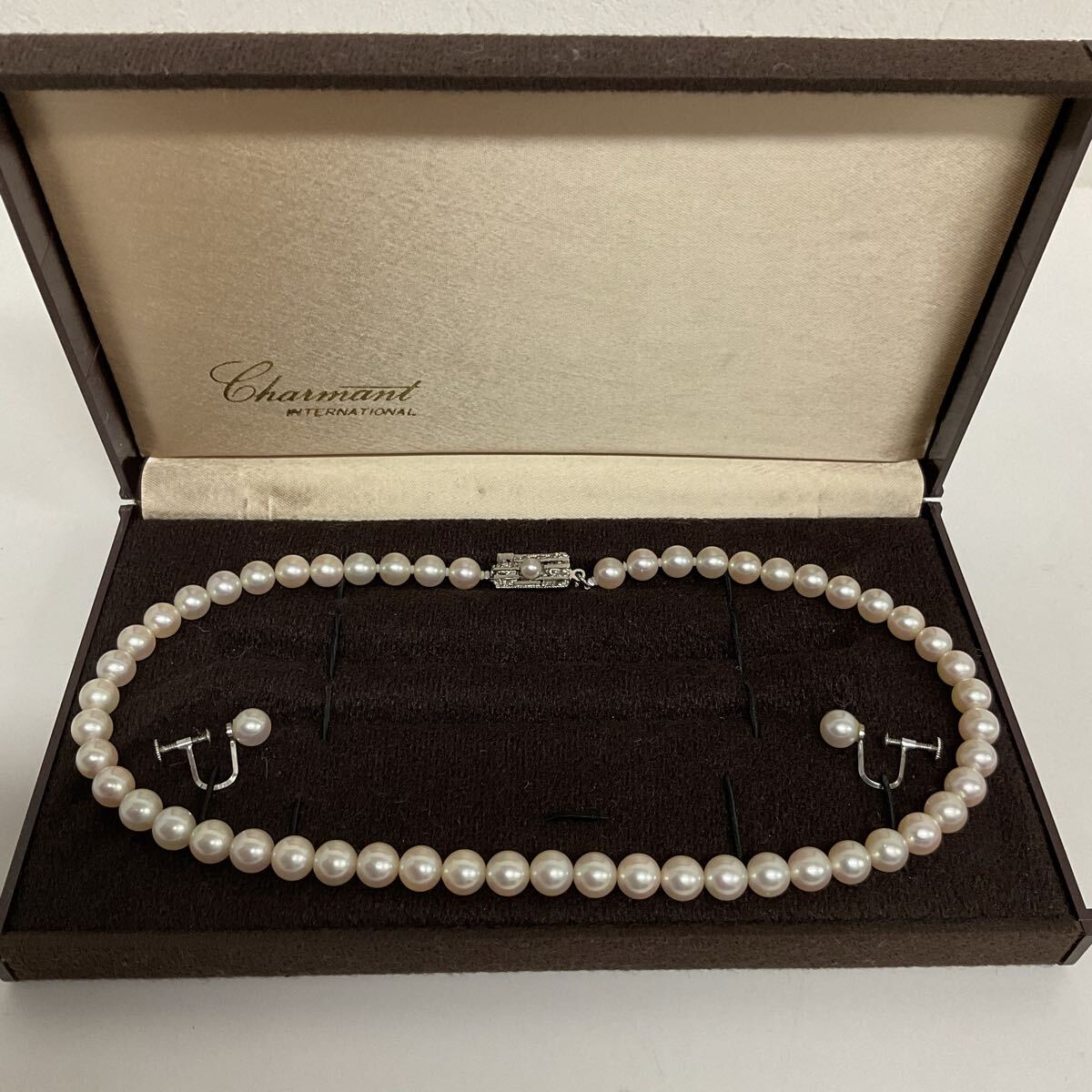 営TT195-60◆ パール 真珠 ネックレス イヤリング セット パールサイズ約:7.17mm 総重量33g ケースあり