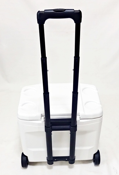 キャスターとハンドル付きで長い移動も楽々のキャリークーラー