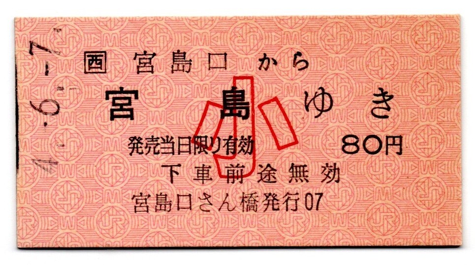 A型券 [西]宮島航路 宮島から宮島口ゆき 80円 宮島さん橋発行 小児
