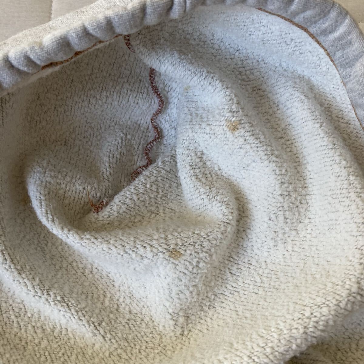 使用感あり、首まわりに薄い汚れあり、フードの内側に汚れあり(外からは分かりません)、色褪せや毛羽立ちあります。