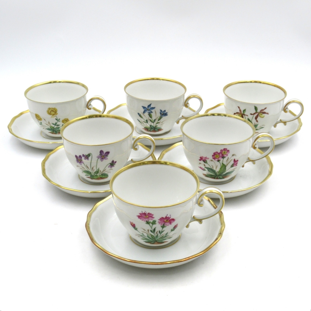 1円〜 2.Augarten アウガルテン アルペンフラワー カップ&ソーサー 6客 計12点 ※同梱不可 3947255